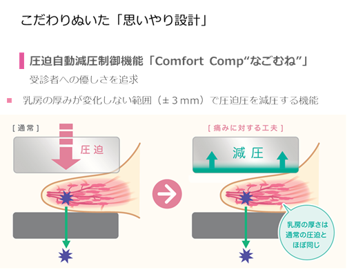 乳がんの検出率が高く、特に超音波では描出が困難な石灰化病変の評価に優れた検査です。
