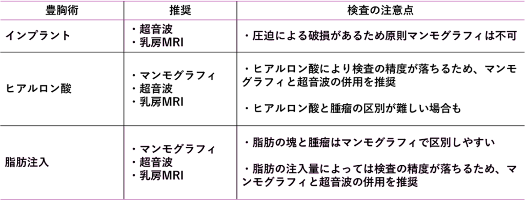 ただし、豊胸術式の種類によっては検査・検診方法に制限が生じる場合があります