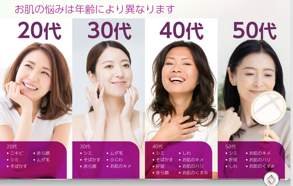 • シミ・くすみ・赤みなど年齢や治療の影響による肌の変化に対し、